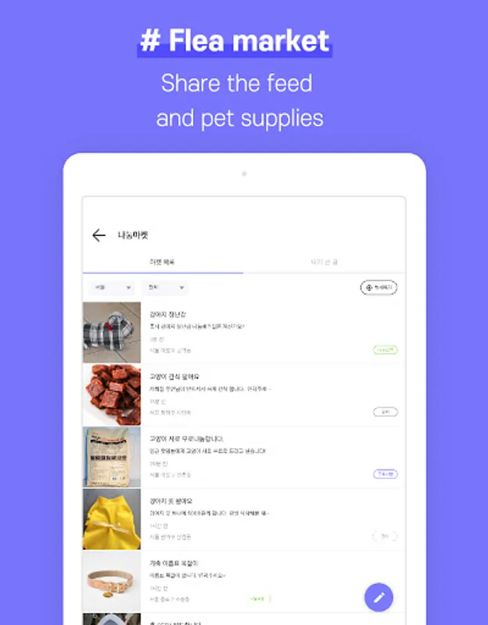 Used market for pet store; a neighborhood market that can be shared and exchanged free of charge.