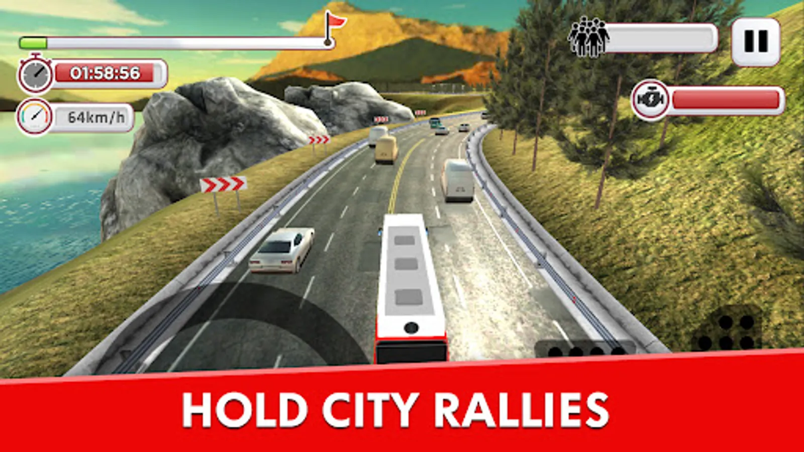 Election Game 2023 features stunning 3D graphics and unique game mechanics that let you race ahead of the other cars on the campaign trail, leaving your rivals behind. You can speed through traffic in your election bus, pass other vehicles without crashing, and overtake rival buses to earn the highest score possible. Your score increases as you successfully pass cars without colliding with them. When you enter a head-to-head mode with a rival bus, quickly press the button to gain extra points.