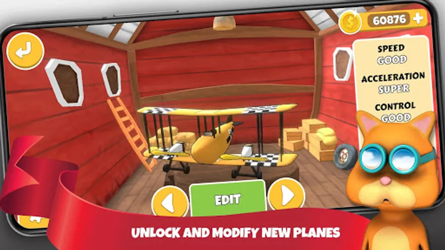 - Improve your pilot and modify your planes with the gold you earn by the end of levels
