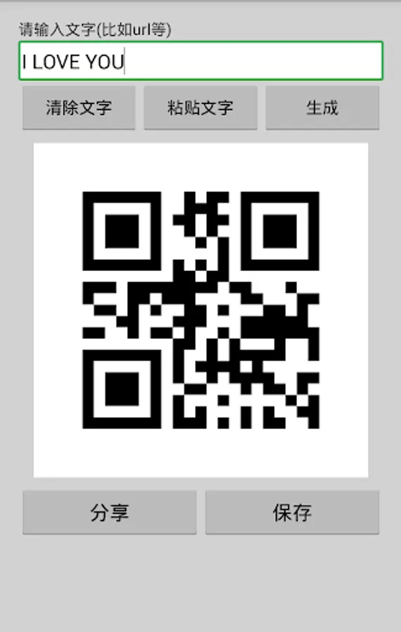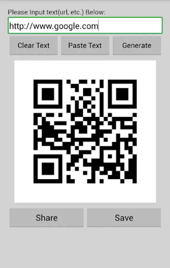 It can encode text to QR Code, also you can save and share the QR Code image.