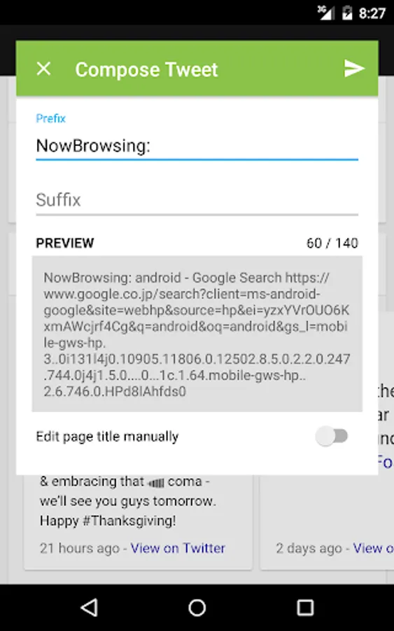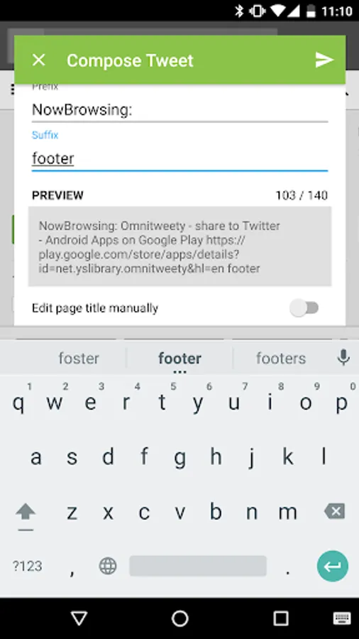 - In case a browser or app does not provide URL's title, Omnitweety can automatically fetch url by itself.