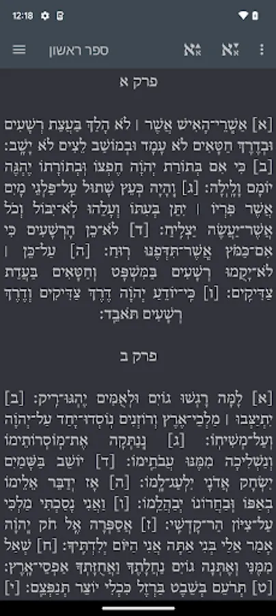 Text-based Tehillim, allowing you to change the font size as you wish.