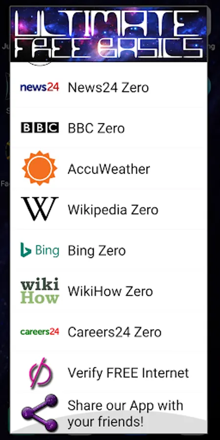 Easily connect to selected websites for FREE on selected mobile networks. Free internet.