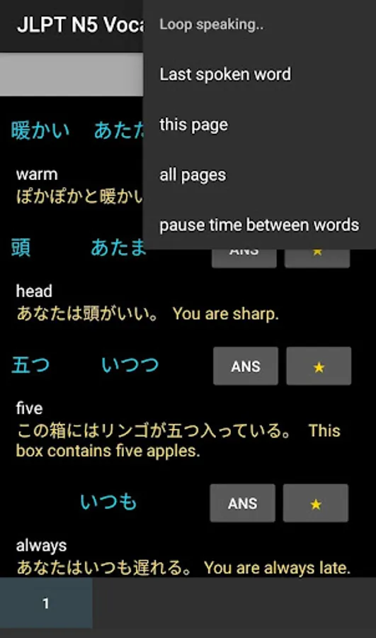 ✔ Tap the Japanese word and listen to the pronunciation.