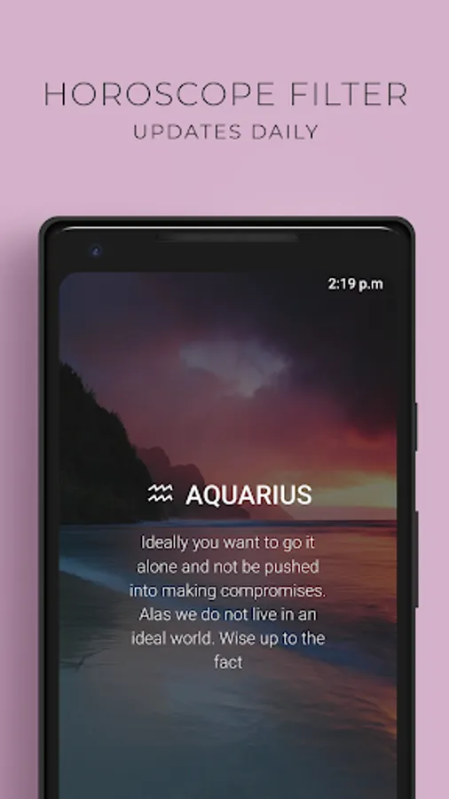 Personalize your phone in 2-3 taps: Simply browse, select the nature scene you love, customize with a calendar or daily horoscope filter (optional), and SET!