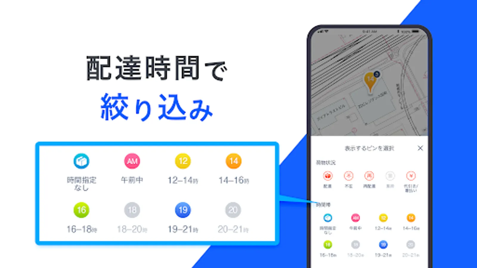 ・Since the remaining number of registered packages and delivery products is displayed on the map in real time, the progress of delivery and home delivery operations can be grasped at a glance.