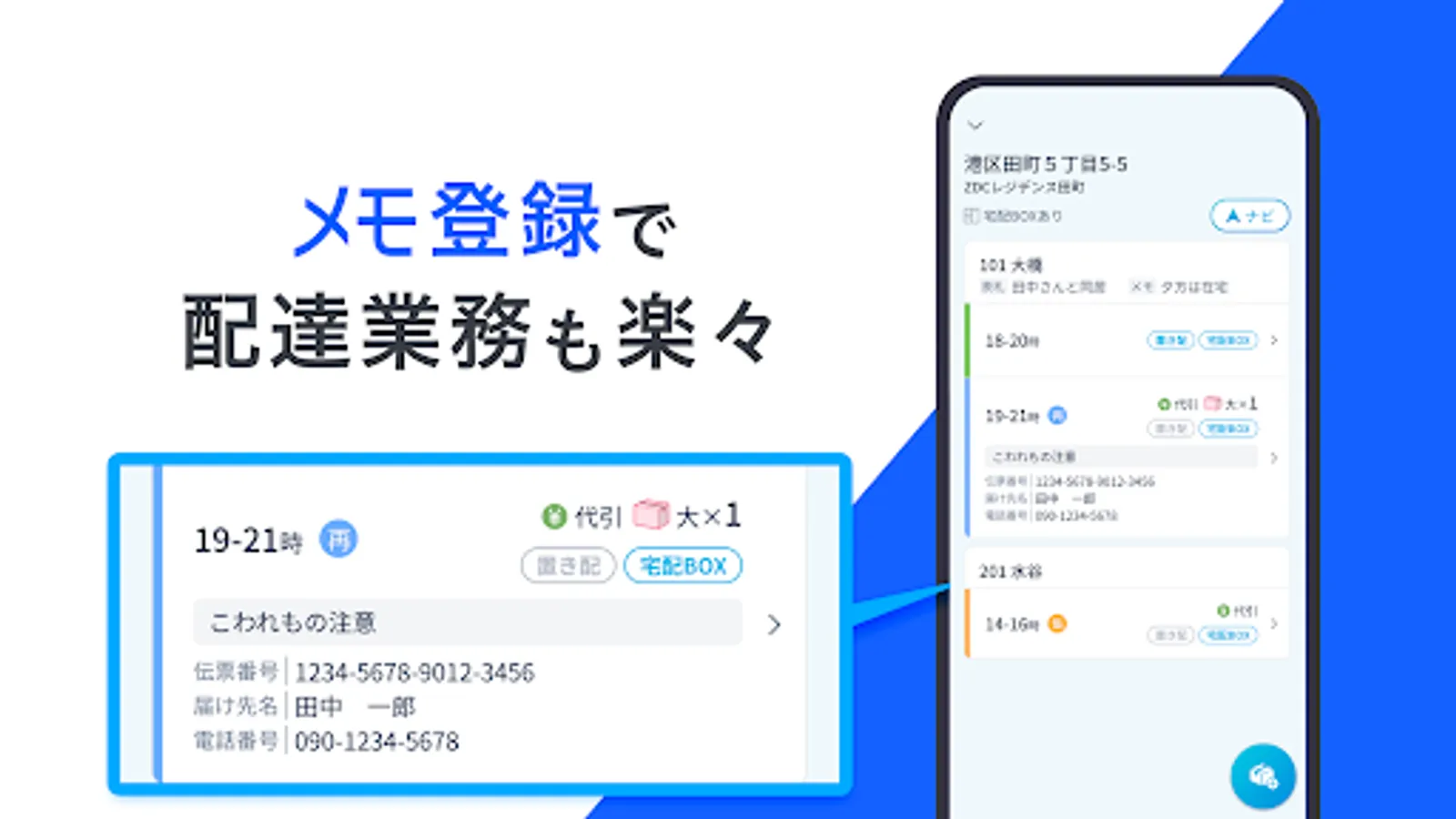 ・Smoothly responds to changes in the delivery time zone due to absence or re-delivery