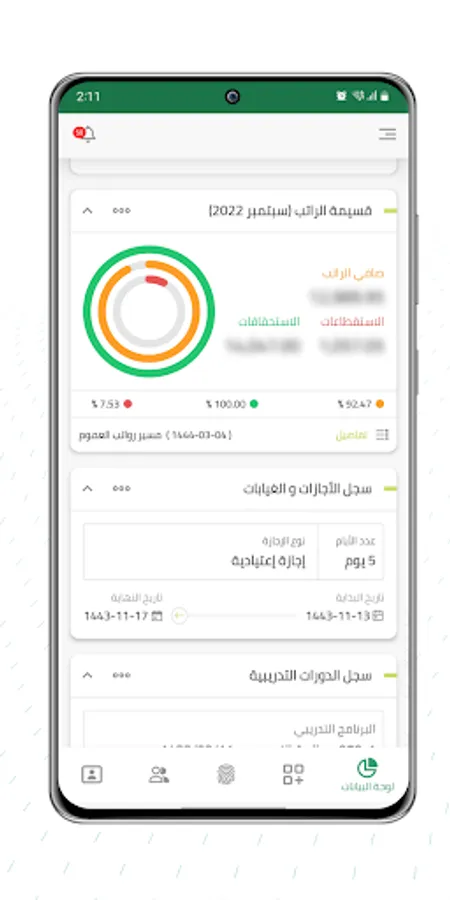 4. Dashboards to display your most important information (benefits balances, salary slips, leave and absence record, training record, performance evaluation and base salary changes record).