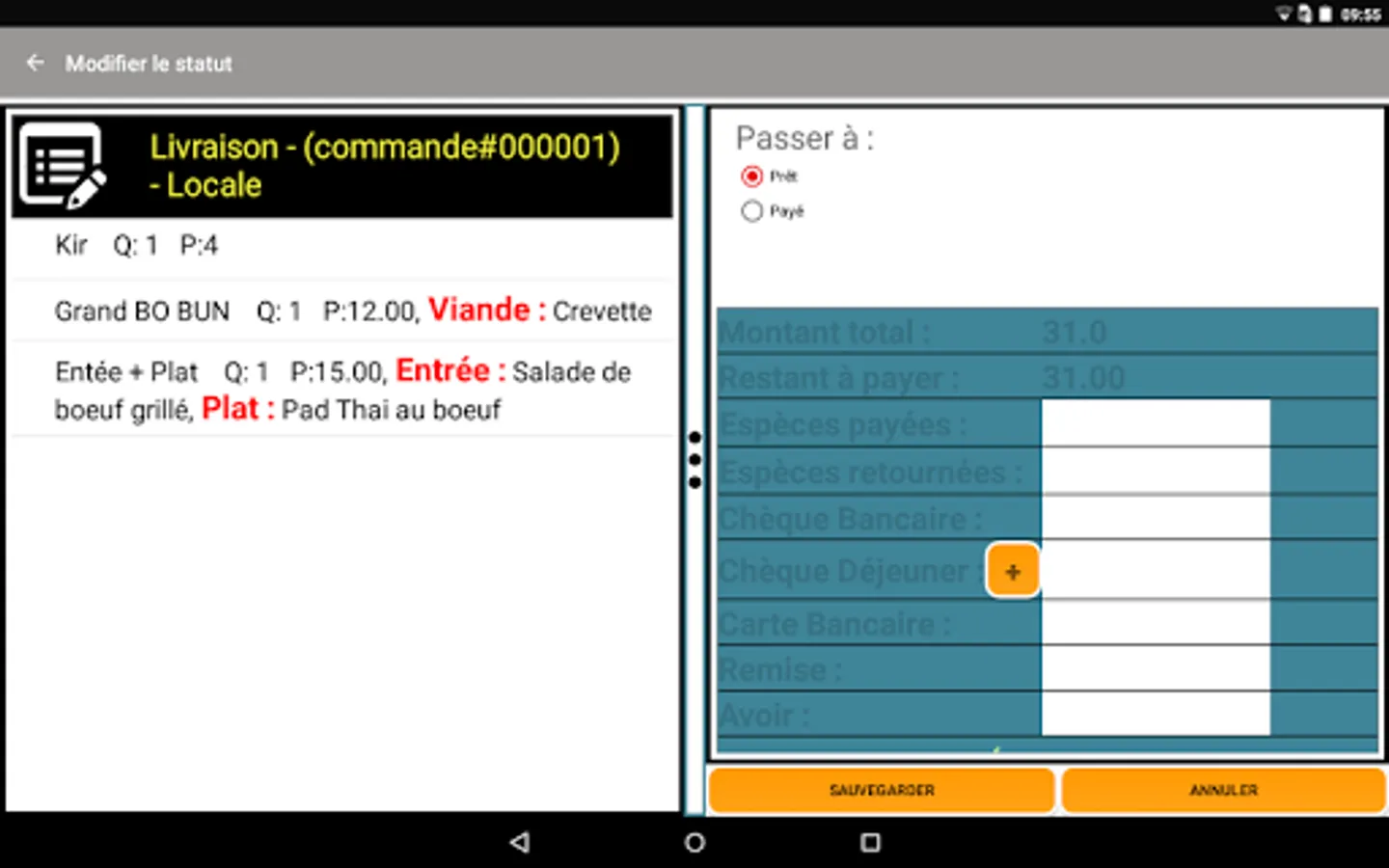 The "SmartResto Monitor" will be installed on a tablet of the restaurant managed by the Manager of the restaurant. It allows to receive customer orders, track order processing in the kitchen until payment customers.