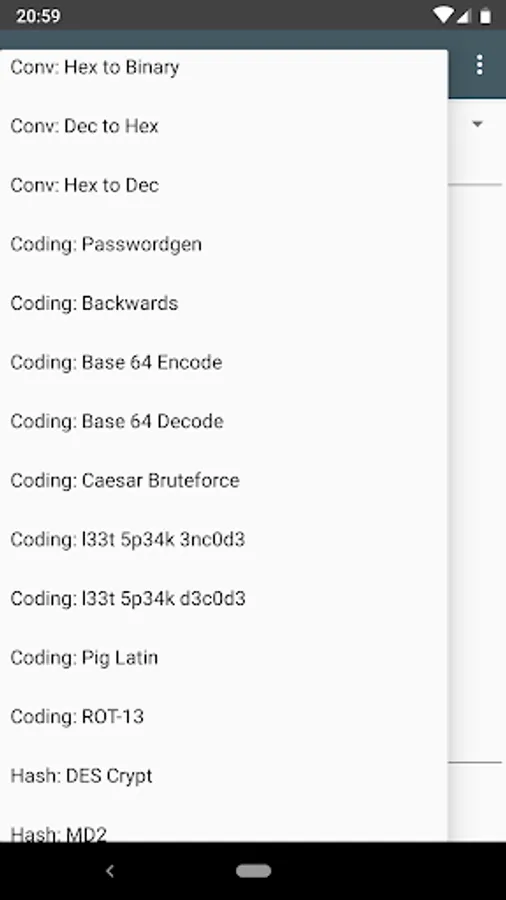 Coding: Passwordgen, Backwards, Base 64 Encode, Caesar Bruteforce, l33t 5p34k, Pig Latin, ROT-13