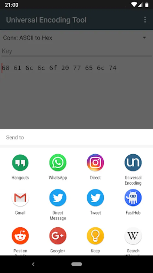 It can handle direct input or from various sources like email, text messaging, books or websites. In reverse, it can share the results over these channels after the chosen method of conversion was applied.
