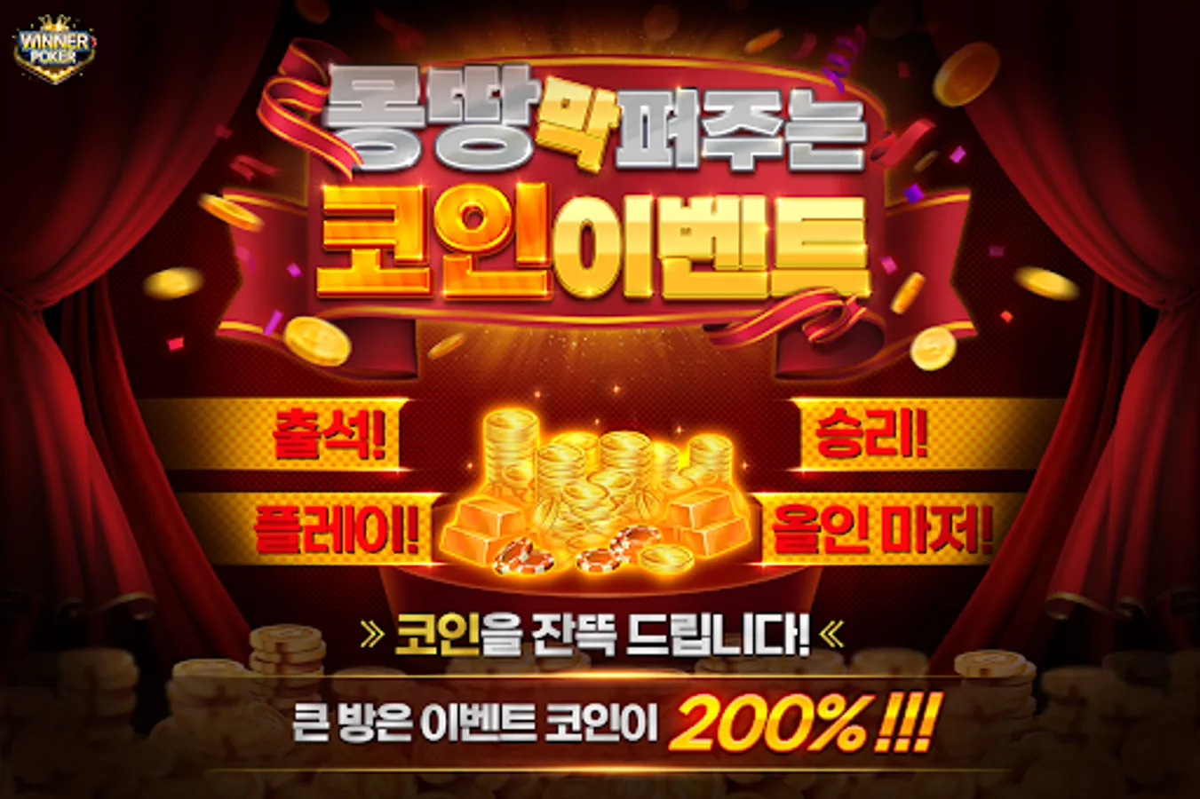 Coin event that just distributes everything! You will receive a lot of coins for attendance, victory, play, and all-in.