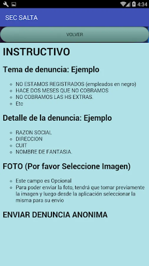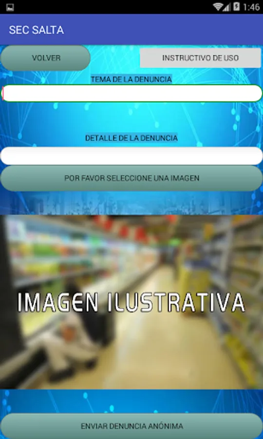 This is a means rather than the SEC Salta offers its members and all workers in trade so you can inform us about irregularities in the workplace. The complaint is anonymous and is accompanied by a picture attached to illustrate in more detail the nature of it.