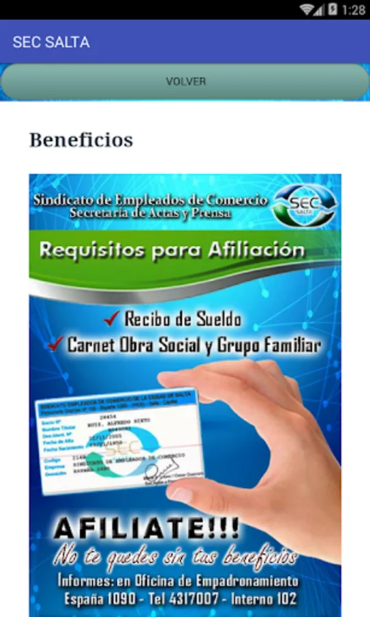 With this application you will be kept informed of developments the Union of Employees of Commerce Salta and may make labor complaints to SEC