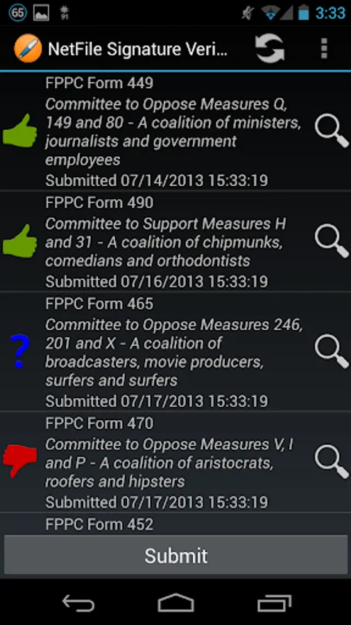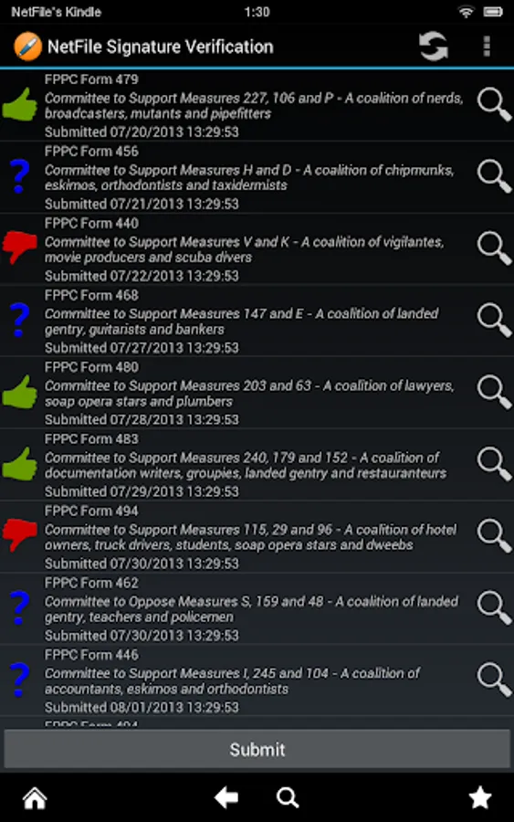 Allows candidates and committee officers to quickly and easily approve e-filed campaign documents in jurisdictions requiring Signature Verification.