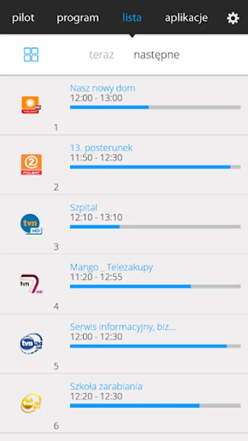 • TV - view the channel grid in the timeline and a list of channels with information about the program