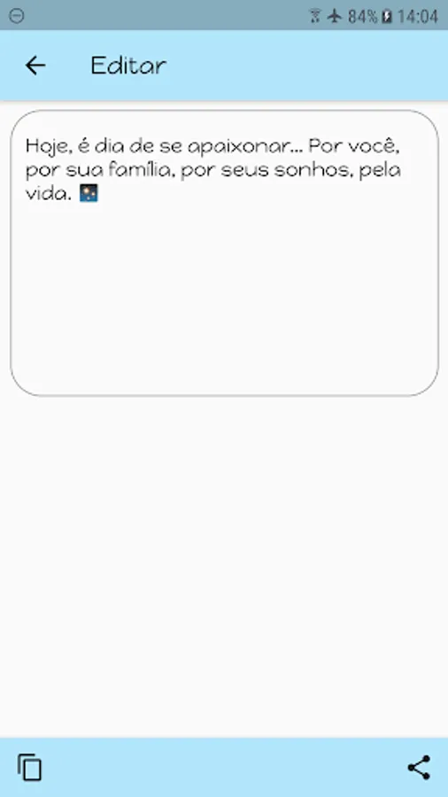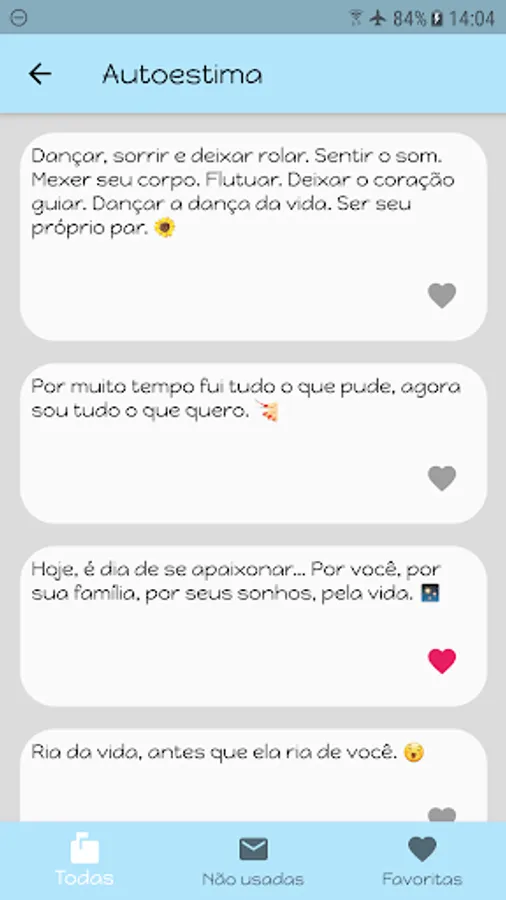 The app has thousands of statuses in the categories, 1 Year of Dating, 1 Month of Dating, Special Friend, Love, Love for Boyfriend, Love for Husband, Self-Esteem, Good Morning Saturday, Rain, From God Showing How Thankful You Are, Disappointment, God is with You, Strength and Faith, Cold, Pregnancy Awaiting the Baby's Arrival, Envy, Maloka, Best Friends, My Birthday, For Daughter, To Post and Leave Running, For those who are well with Life, Beach, Who is Tired of Everything, Wisdom and Reflection on Life, On It, Dreams, Overcoming and Sad, all ready just for you to share on your social networks.
