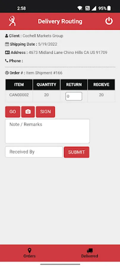 Drivers use a mobile application on any Android or IOS device to be guided through their route, receive turn by turn instructions, capture signatures and even take pictures of delivered items.
