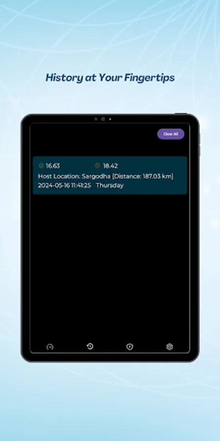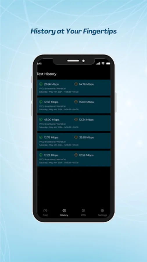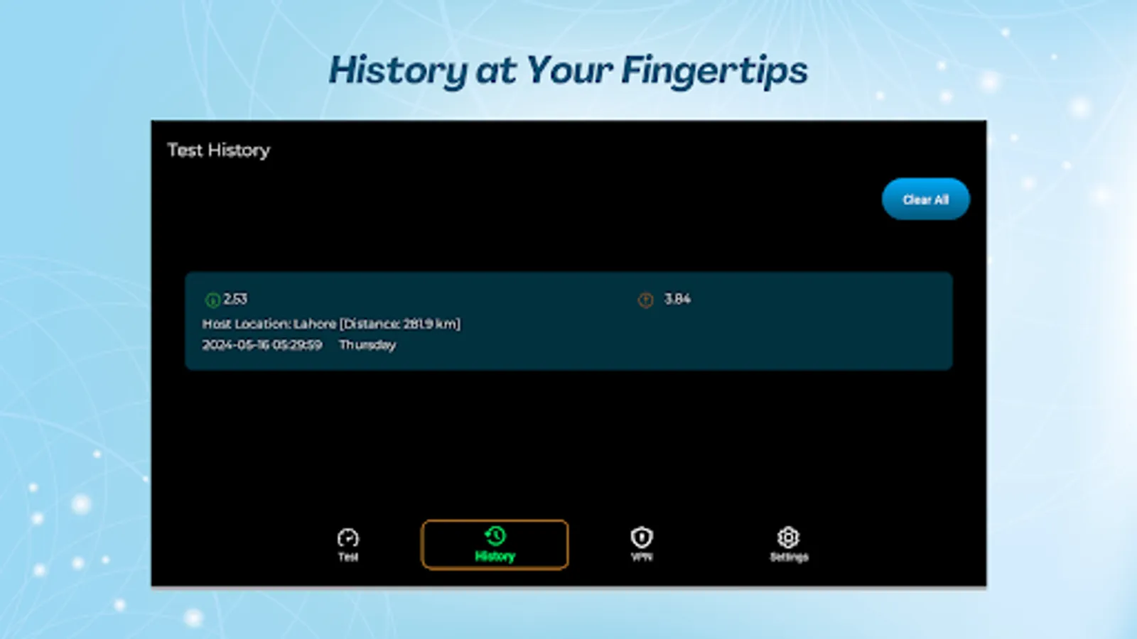 The app keeps a detailed history of all your speed tests, providing you with valuable insights over time.