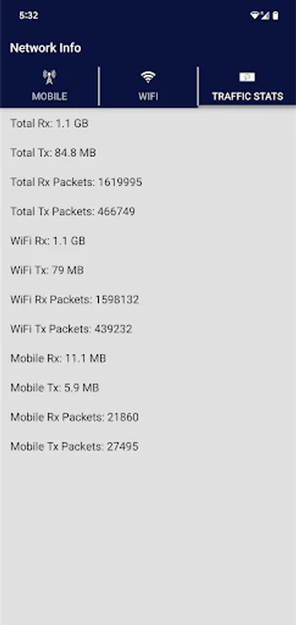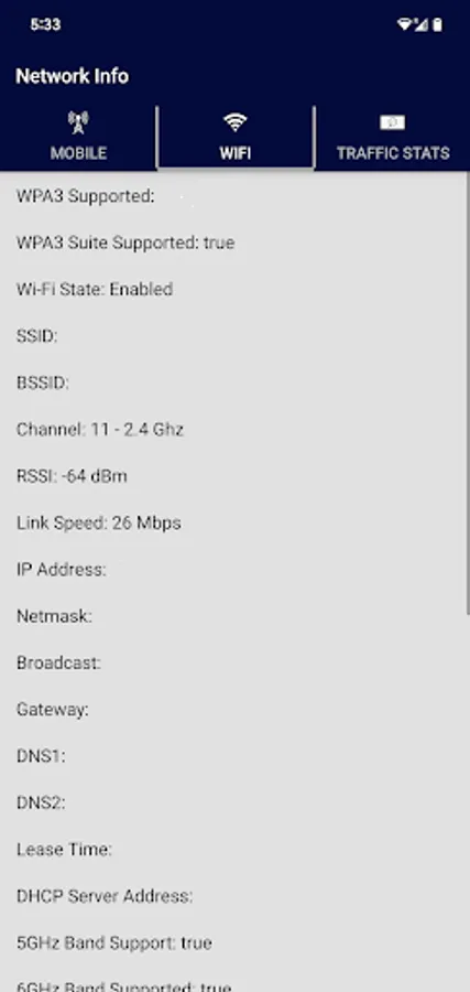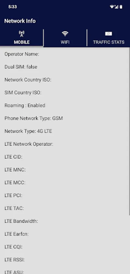 Mobile Network and Wi-Fi Network Information.