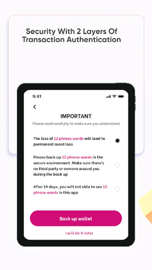- Create a new wallet or import your existing wallet in 3S Wallet. Your phone is converted into a highly secure wallet, where the wallet's private keys and assets are always in YOUR control (No one else can access your wallet)
