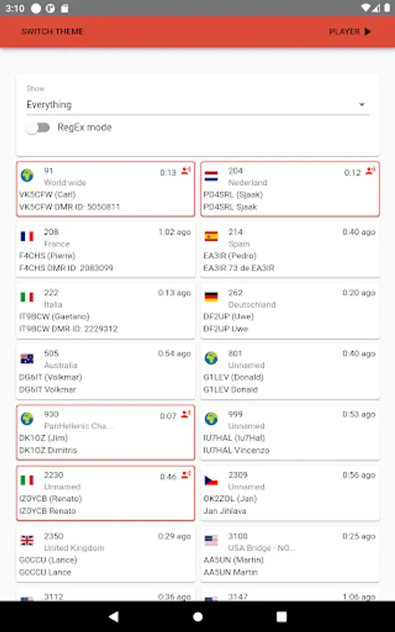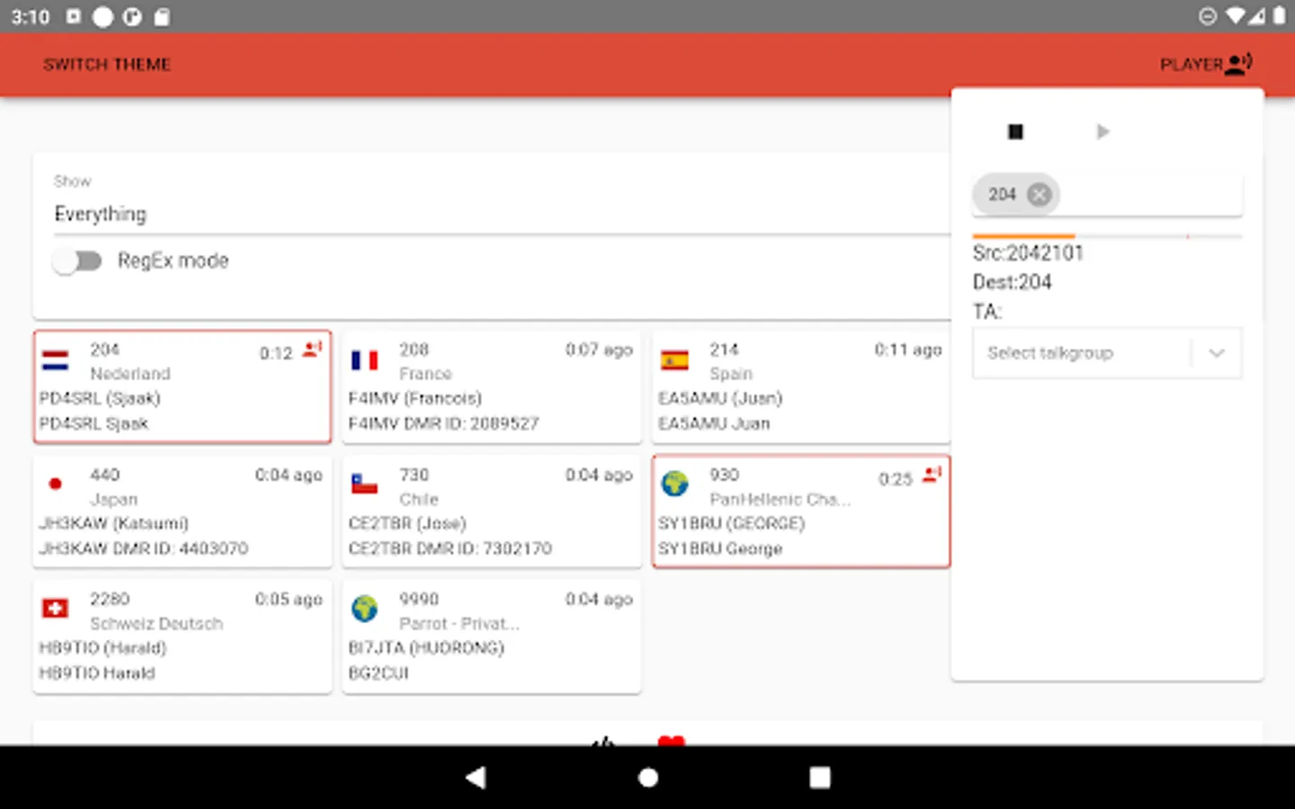 A brand new VU-Meter was added inside the player, just below the talkgroup number(s). It measures the audio before AGC. It is done within the BrandMeister platform and reported independently from the supplied audio. The color coding is as follow:
