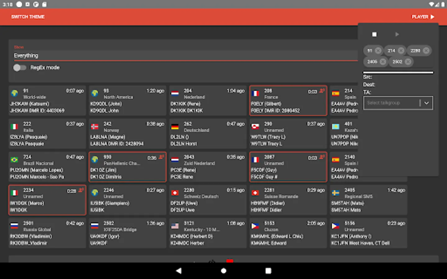 When you click on one block from the homepage, you will register to this talkgroup, and any QSO will play on your speakers. If you click on another block, you will be unregistered from the previous talkgroup and registered to listen to the talkgroup matching the new block you clicked on.