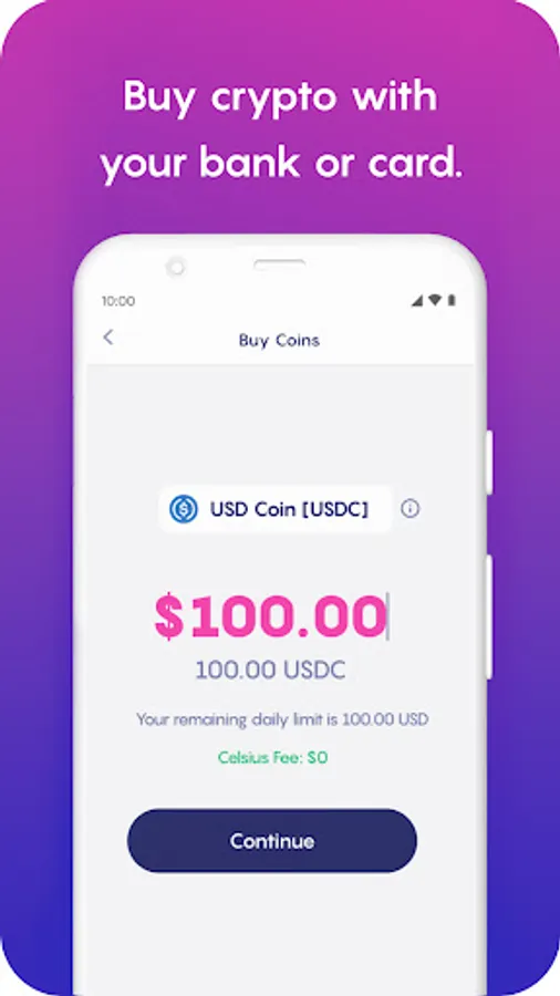 Just getting started or buying more assets? Skip the transfer fees and buy directly in-app with Celsius.