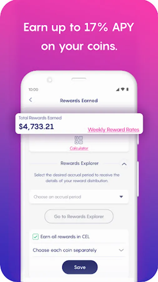 Don’t let your coins set idle. Transfer your assets to Celsius (or buy directly in-app) to start earning compounding crypto rewards. With Celsius, you can earn competitive yield on 40+ assets, paid weekly.