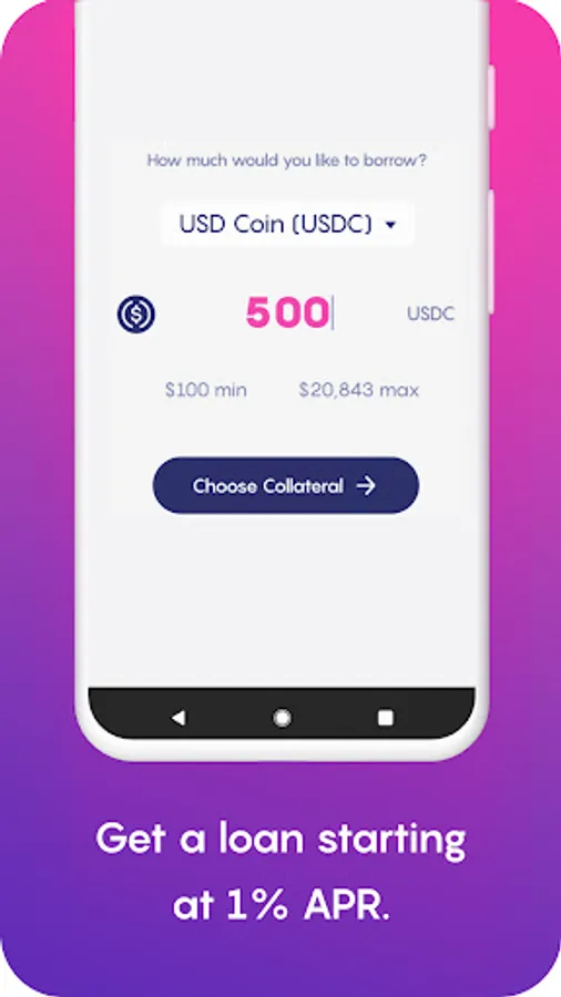 ● Borrow against your crypto with loans starting at 0.1% APR.