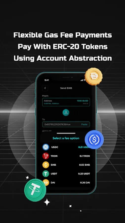 DGG Wallet supports Account Abstraction on Blockchain Layer 2 such as Arbitrum and ZKSync, providing a seamless user experience, which makes your transactions fast, secure, cheap and private. With the salient feature, you will be able to benefit from advanced features such as multi-sig, and smart recovery as well as leverage the ability to change keys without changing wallets, or flexible gas fee payment method with ERC-20 tokens.