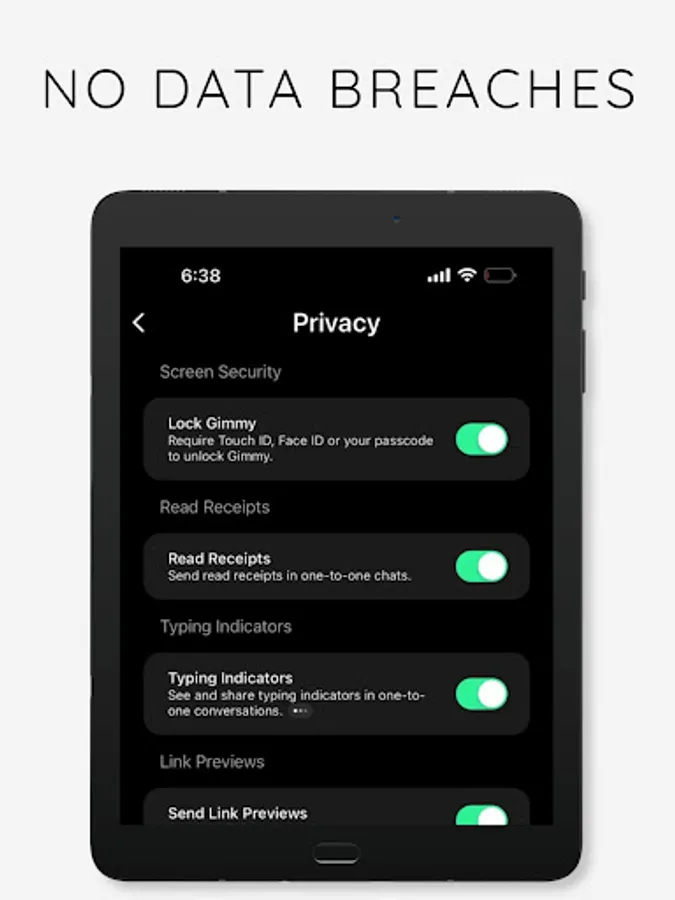 • No metadata logging: Gimy doesn't store, track, or log your messaging metadata
