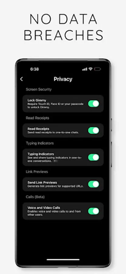 • Secure attachments: Share voice snippets, photos, and files with Gimy's secure encryption and privacy protections