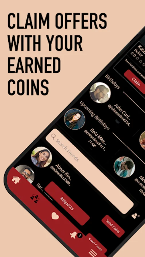 The community feature in the app is a space where you can add your friends, remember their birthdays and send coins as gifts to the members of your community.