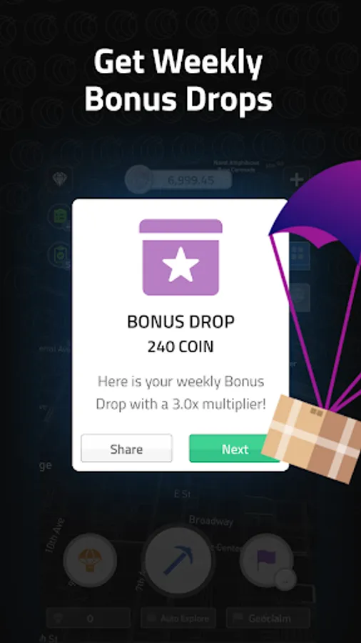 Use the Auto Explore feature to earn on the go, or establish a Home Base if you'll be spending the day indoors! Power up Bonus Drops and collect them every week.