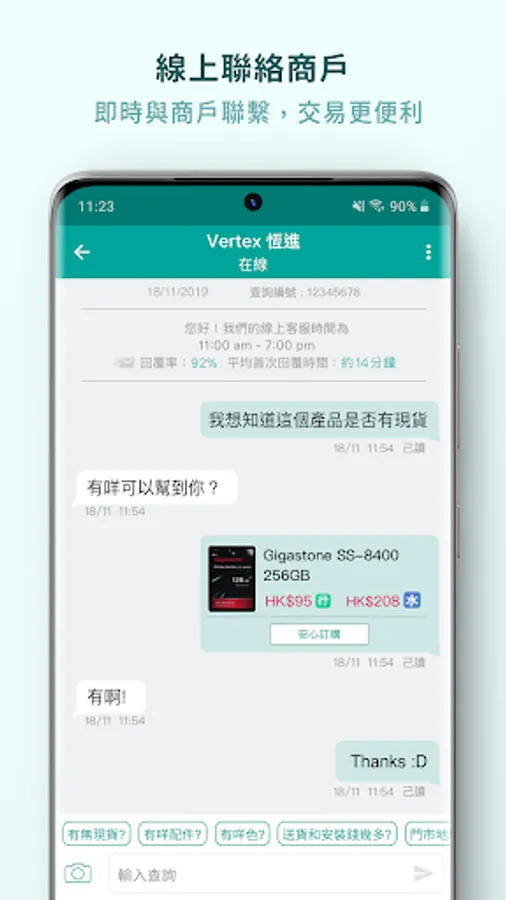 Use "Safe Order" to purchase products with original factory maintenance, and you can get an additional 6 months of "PriceCare" repair compensation, the amount can reach up to HK$1000, adding protection to your products. With instant messaging function, you can communicate with merchants at any time, making shopping easy and secure.
