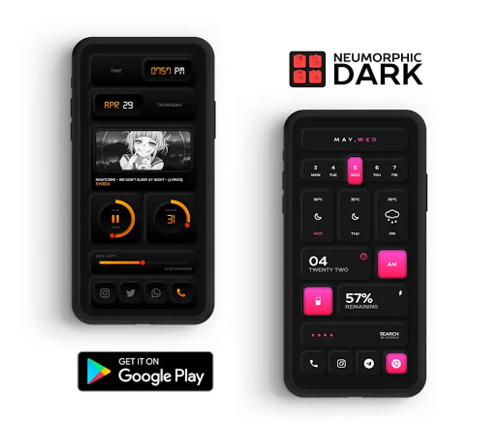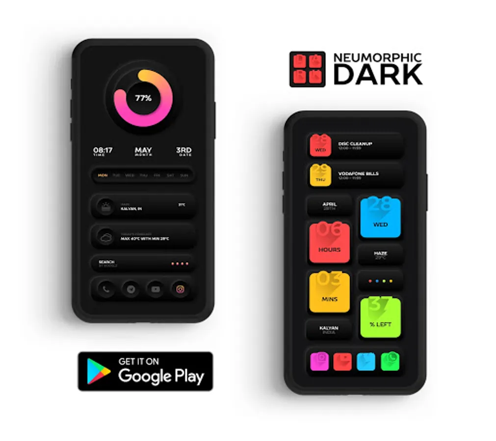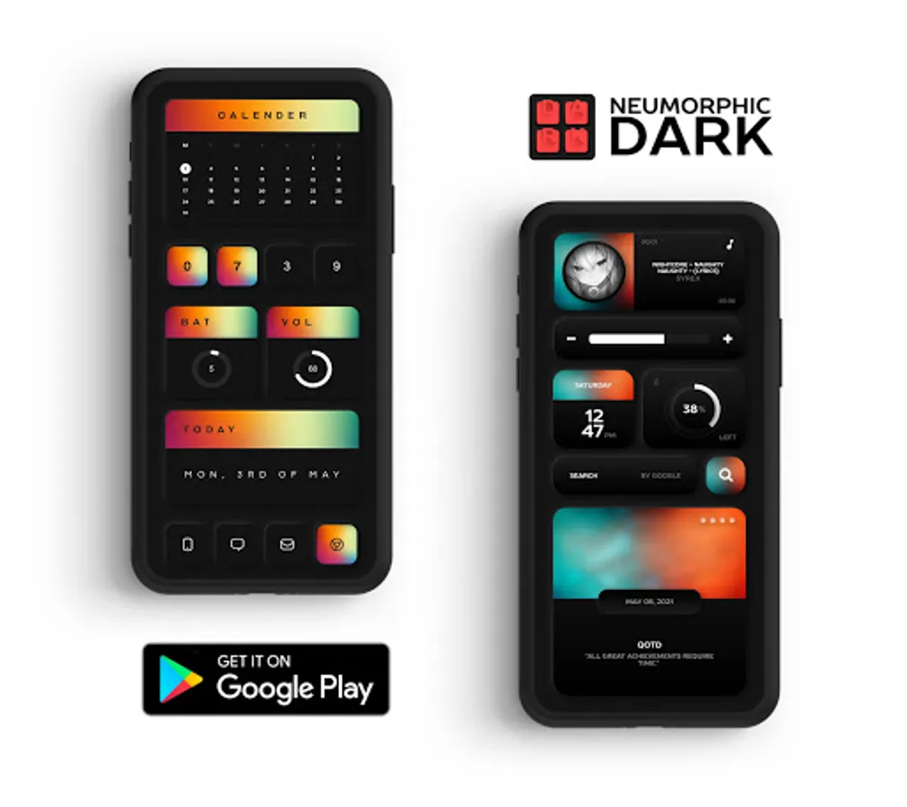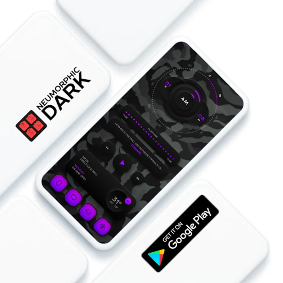 The design of Neumorphic Dark Kwgt Widgets Pack is based on Neumorphic, skeumorphic design, along with some unique widgets. You can adjust colours of each element in globals. Create beautiful setups and make your homescreens look amazing with Neumorphic Dark KWGT. You can also turn background transparent or translucenct to give glass-morphic look to the widgets