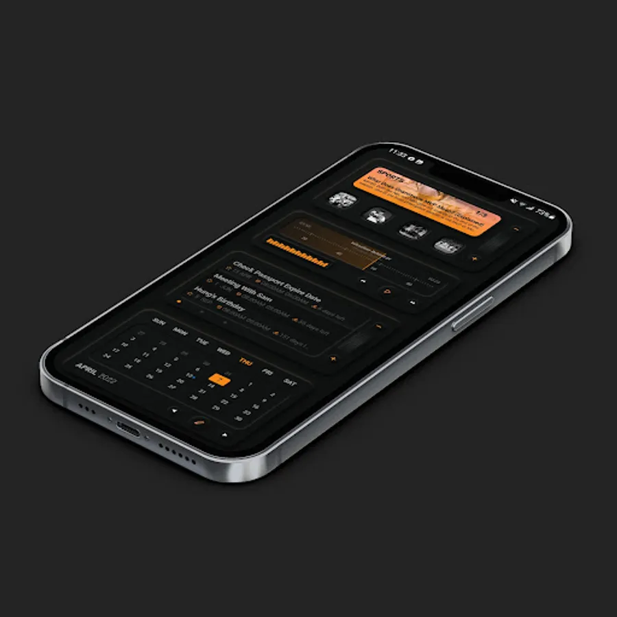 + Each theme has 4 main sections: Music Player ( with animated music visualization), Calendar with detail events, Weather, News feeds.