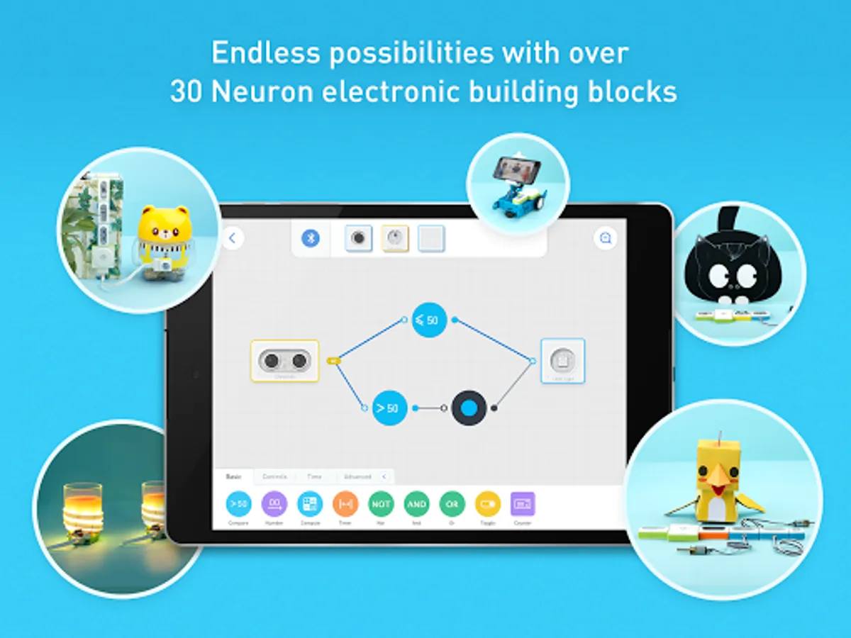 Neuron App is the companion app of Makeblock Neuron® electronic modules. You can invent with electronic modules by drawing lines without learning complex programming languages. You need to connect to your Makeblock Neuron® electronic modules with Bluetooth or Wifi in order to make with electronics in Neuron App.