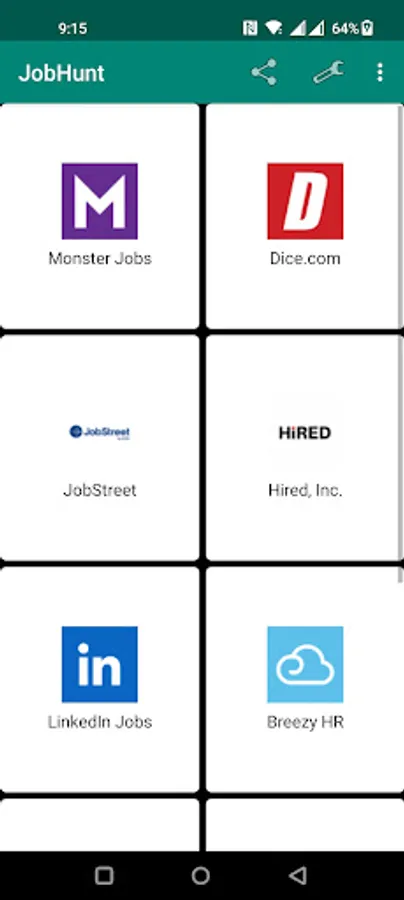 JobHunt - your ultimate job search companion! Say goodbye to the hassle of switching between multiple job search platforms to find your dream job. With this app, you have access to the name, logo, and link of 10 leading job search platforms including Monster and similar sites, all in one convenient app. With a user-friendly interface and intuitive navigation, finding your next job has never been easier. Whether you're a seasoned professional or just starting your career, it has got you covered. Start your job search today with JobHunt and take the first step toward your dream career.