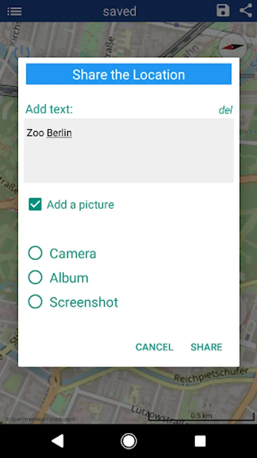 ALTERNATIVE LOCATION SHARING: Sharing option with your family, loved ones, friends or colleagues via all social media servers, mail, or bluetooth. It has been simplified to make easy and effective interactive sharing by using a visual attachment in the form of a map screenshot, a photo from the camera or from photo gallery.