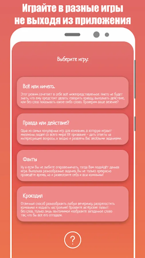 This free collection of entertaining games for the company will turn even an ordinary meeting with friends into an unforgettable party, because it contains 4 games: