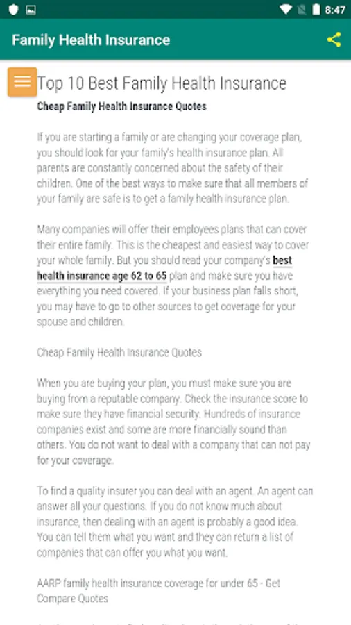 Family Health Insurance is an Android health insurance search application for all states in the United States. Our mission is to help you in your search for your individual and small group family health insurance plans.