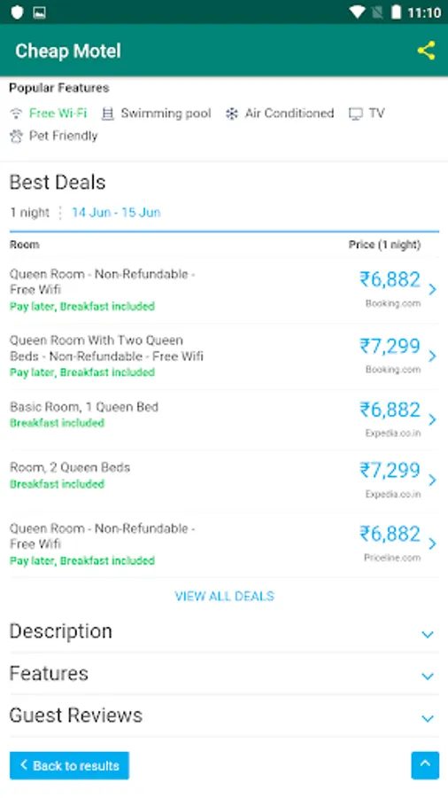 The Cheap Motels application helps you find hotels, motels or B & Bs and compare prices on major booking sites. Download the Cheap Motel application to discover hotels and motels of compare prices for great deals. Save money and plan for future holiday reservations while you travel!
