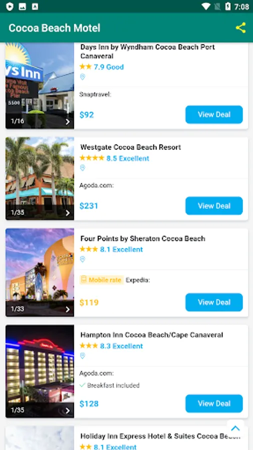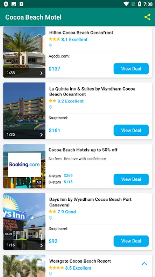 Here in our cocoa,fl motel booking app you can save hundreds of hotels, villas, apartments, motels and resorts all in one place. We have partnered with some of the largest travel providers to deliver unmatched accommodation deals around the world.