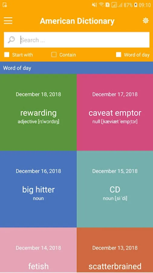 - Search history to help you find recently searched for words