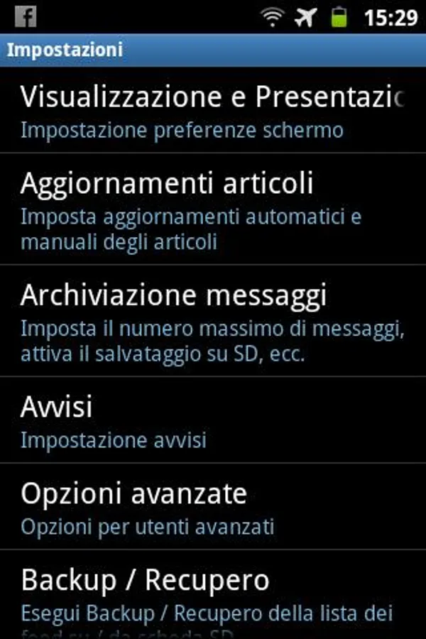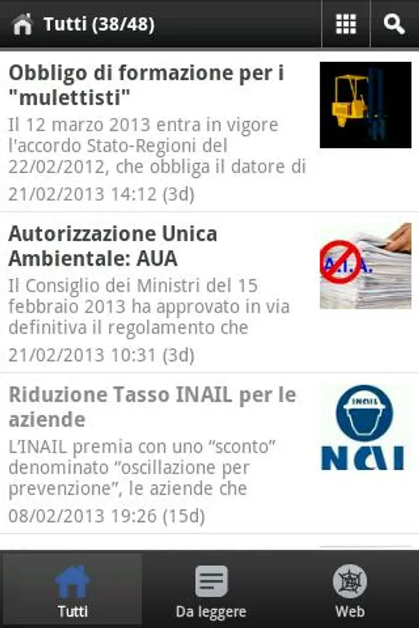 The application consists of an RSS reader associated with the news on the site www.a2c.it