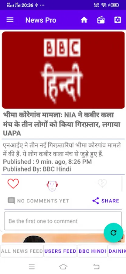 News Pro is a News com social networking application which gets news from various sources like BBC Hindi, News 18 and others using their RSS Feed.