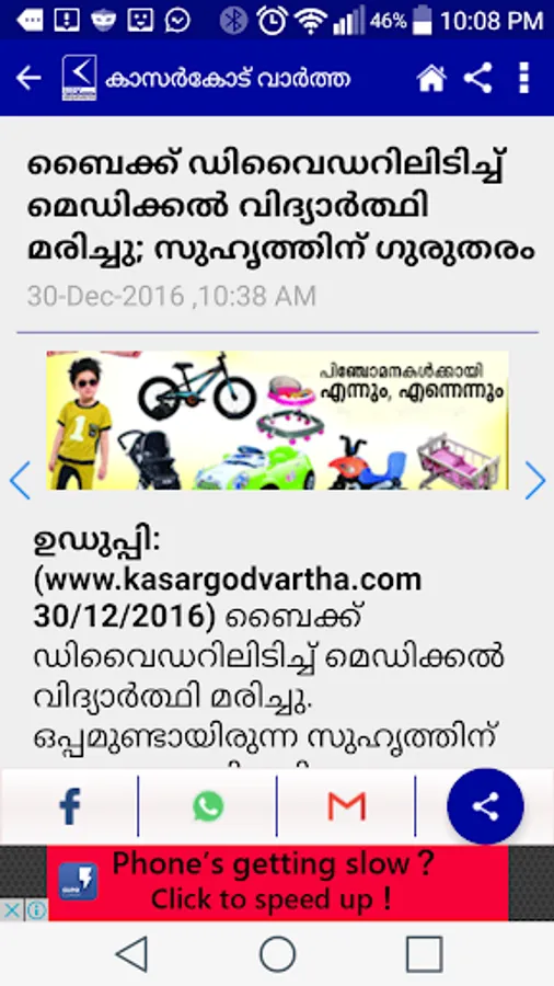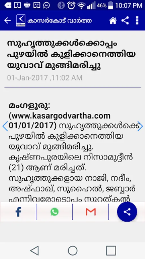 105,000+ facebook page likes; Kasargodvartha.com stay close and very much ingrained to its viewers each second, catering news and updates from world around.