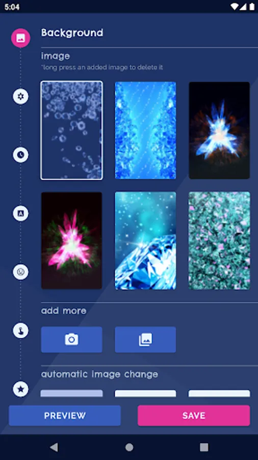 Create your own themes by adding clocks, frames, emoji, animated shiny particles, magic touch to the background changer, or even make it a 3D wallpaper or 4D wallpaper (parallax wallpaper with parallax effect). It works on the lock screen too!